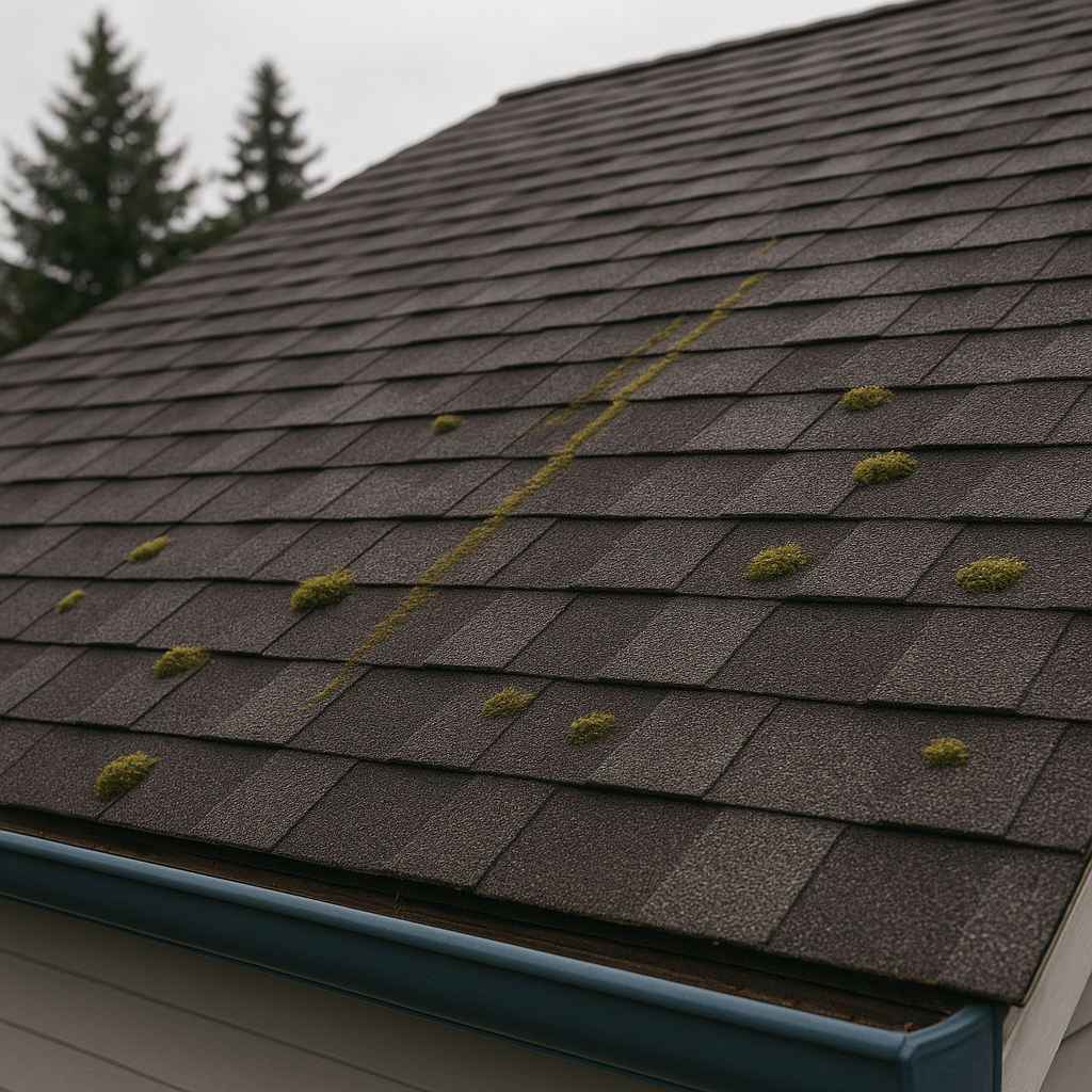 Local truth: North-facing and shaded roofs in South Salem, West Salem, Keizer, Silverton, Dallas, Independence, Monmouth, and Stayton see growth sooner and heavier than sun-exposed roofs.